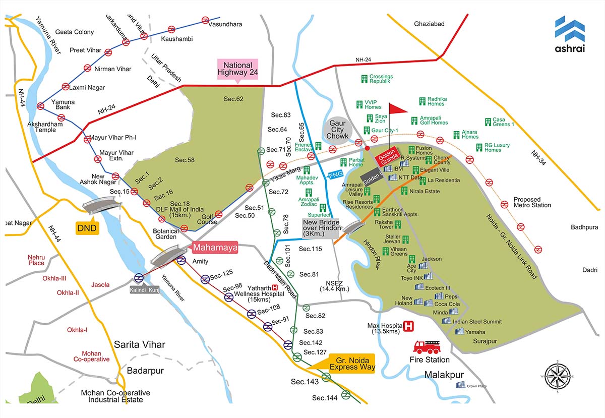 Spread across 25 acres with 3.5 acres dedicated to lush green open spaces and serene water creeks, Golden Grande is set to transform the commercial real estate landscape of Greater Noida West. Strategically located at Plot No. 19, Tech Zone IV, Noida Extension, this premium mixed-use development offers unparalleled connectivity to key areas across Delhi NCR.